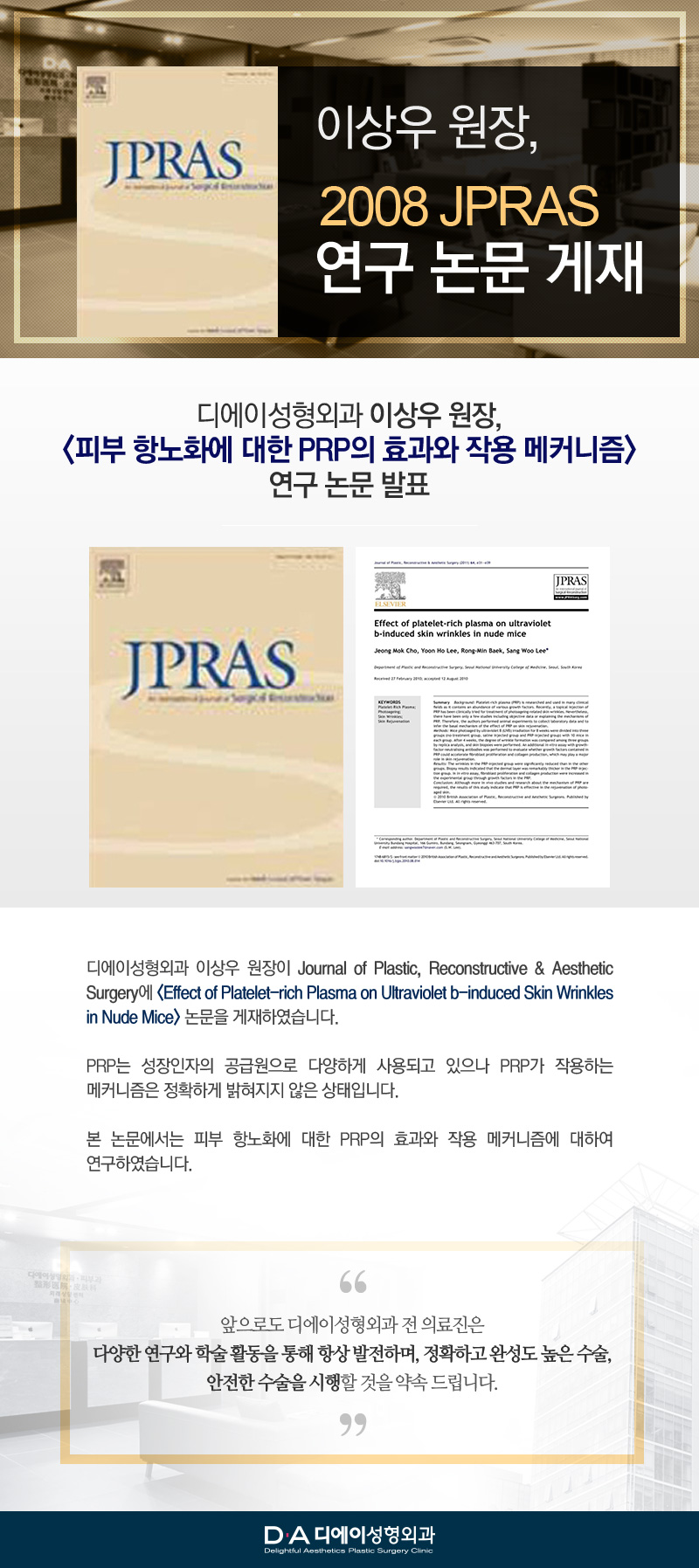 [논문발표] 이상우 원장, <피부 항노화에 대한 PRP의 효과와 작용 메커니즘> 연구 논문 발표