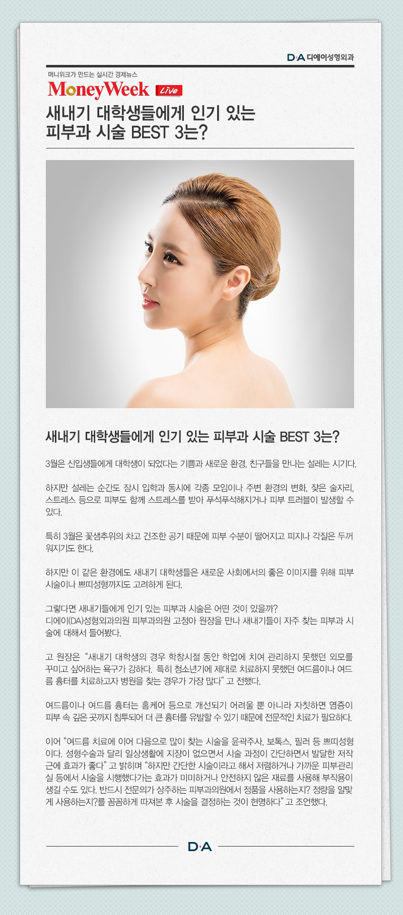 새내기 대학생들에게 인기 있는 피부과 시술 BEST 3는?