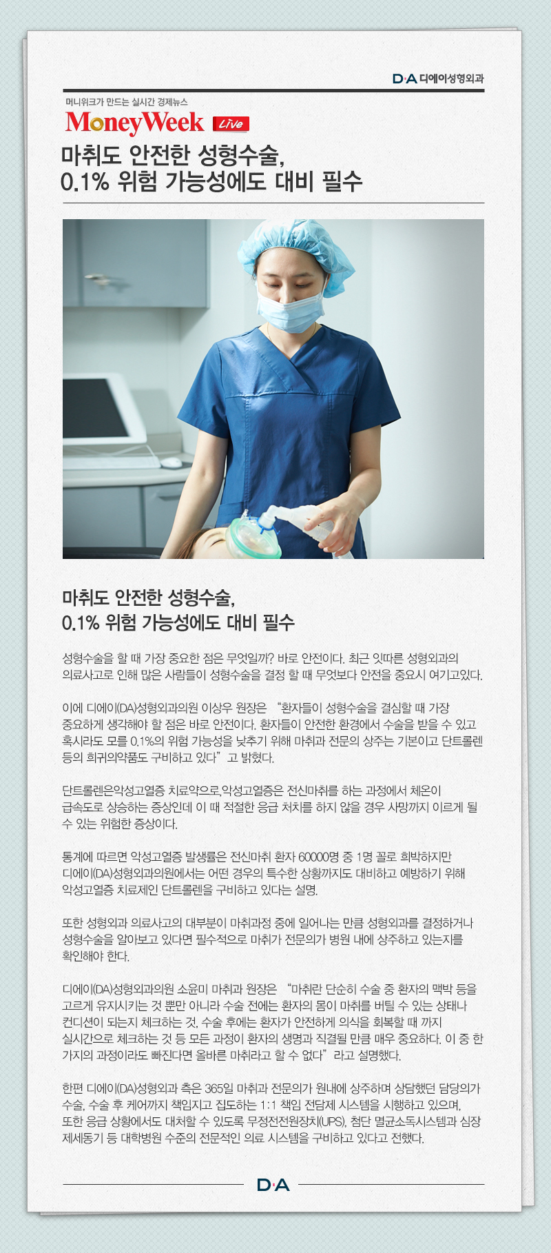 마취도 안전한 성형수술, 0.1% 위험 가능성에도 대비 필수