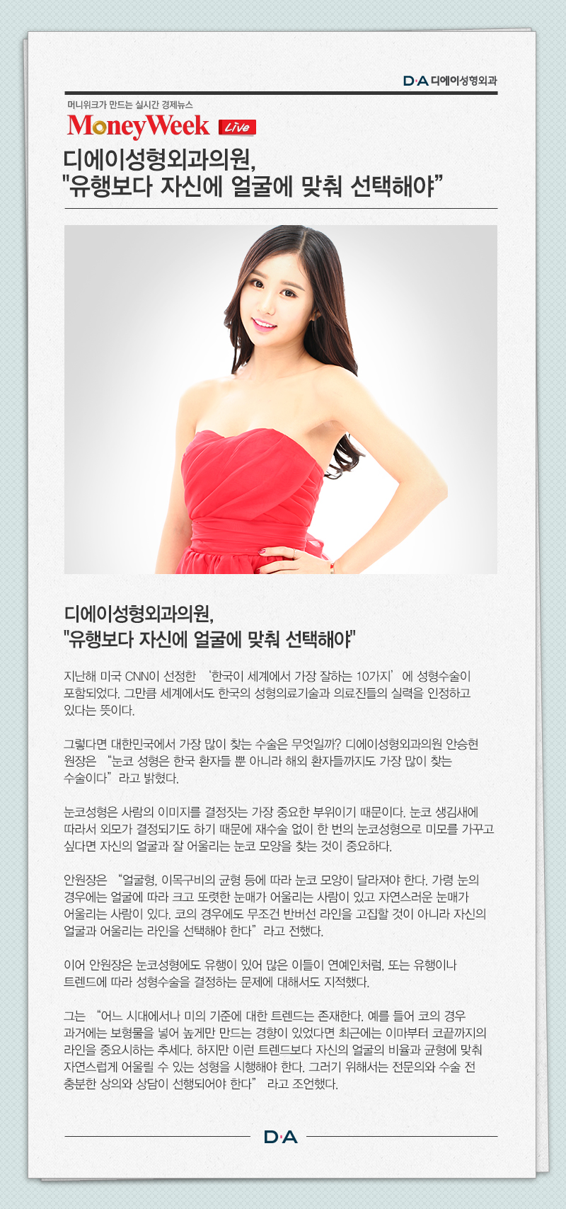 디에이성형외과의원, "유행보다 자신에 얼굴에 맞춰 선택해야"
