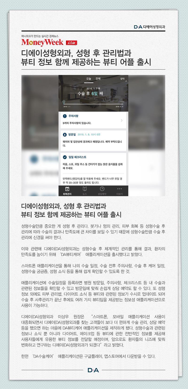 디에이성형외과, 성형 후 관리법과 뷰티 정보 함께 제공하는 뷰티 어플 출시