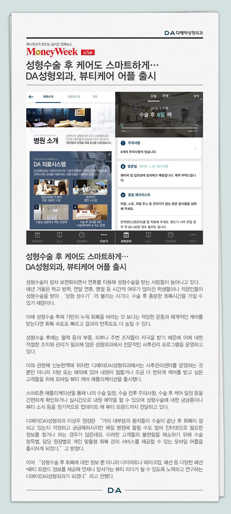 성형수술 후 케어도 스마트하게… DA성형외과, 뷰티케어 어플 출시