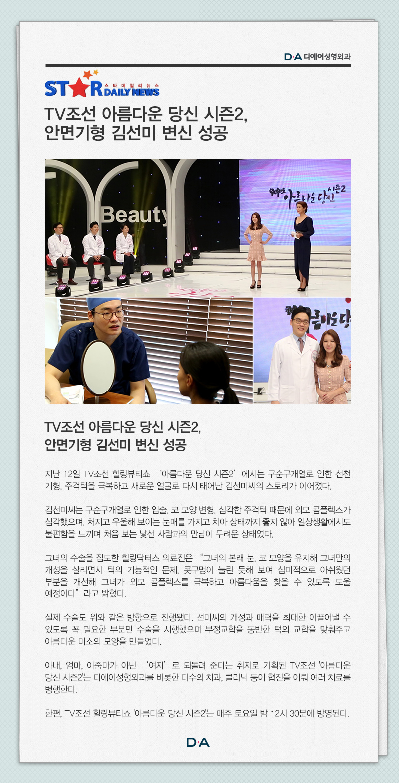TV조선 아름다운 당신 시즌2, 안면기형 김선미 변신 성공